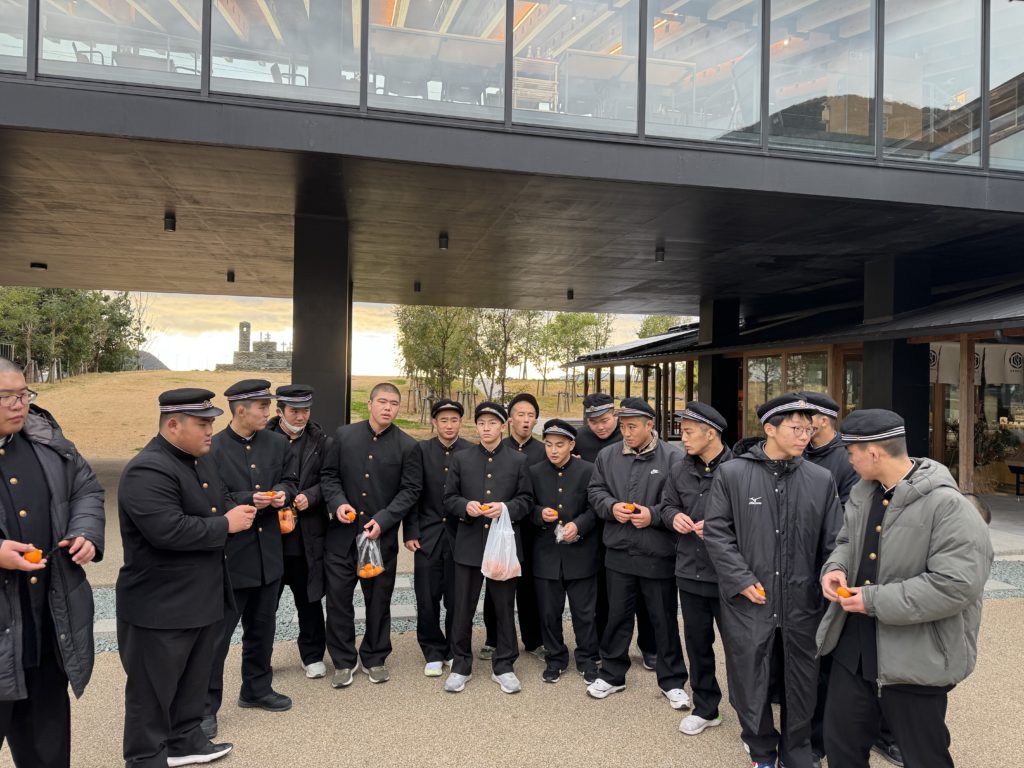 みんなでミカンを食べ、
