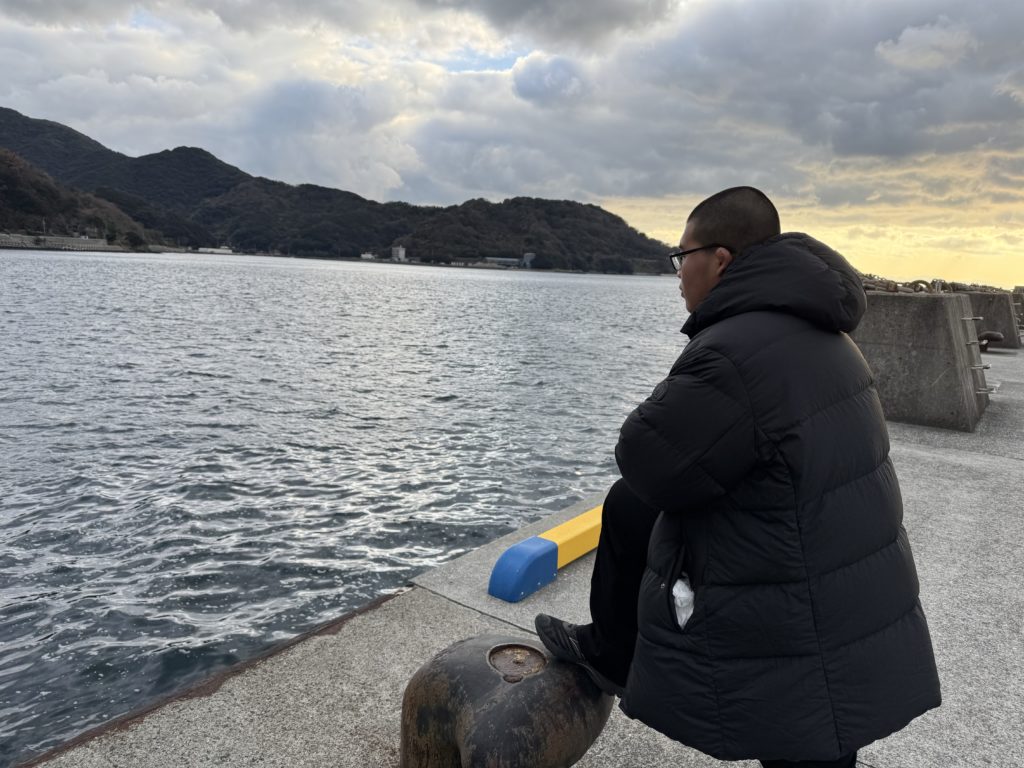 フェリーの出発時間まで時間があったため、その辺散策しててと言ったところ、テレビの取材が。