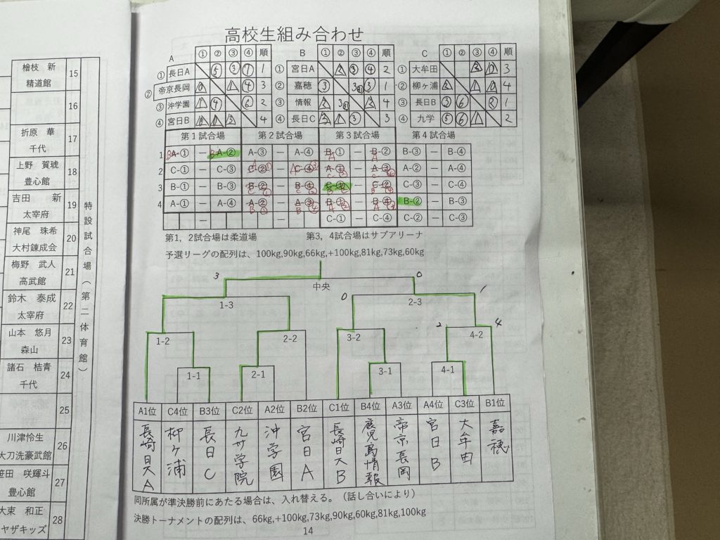 本日は長崎日大高校にて表記の大会が開催されました。体重別の7人制による団体戦です。